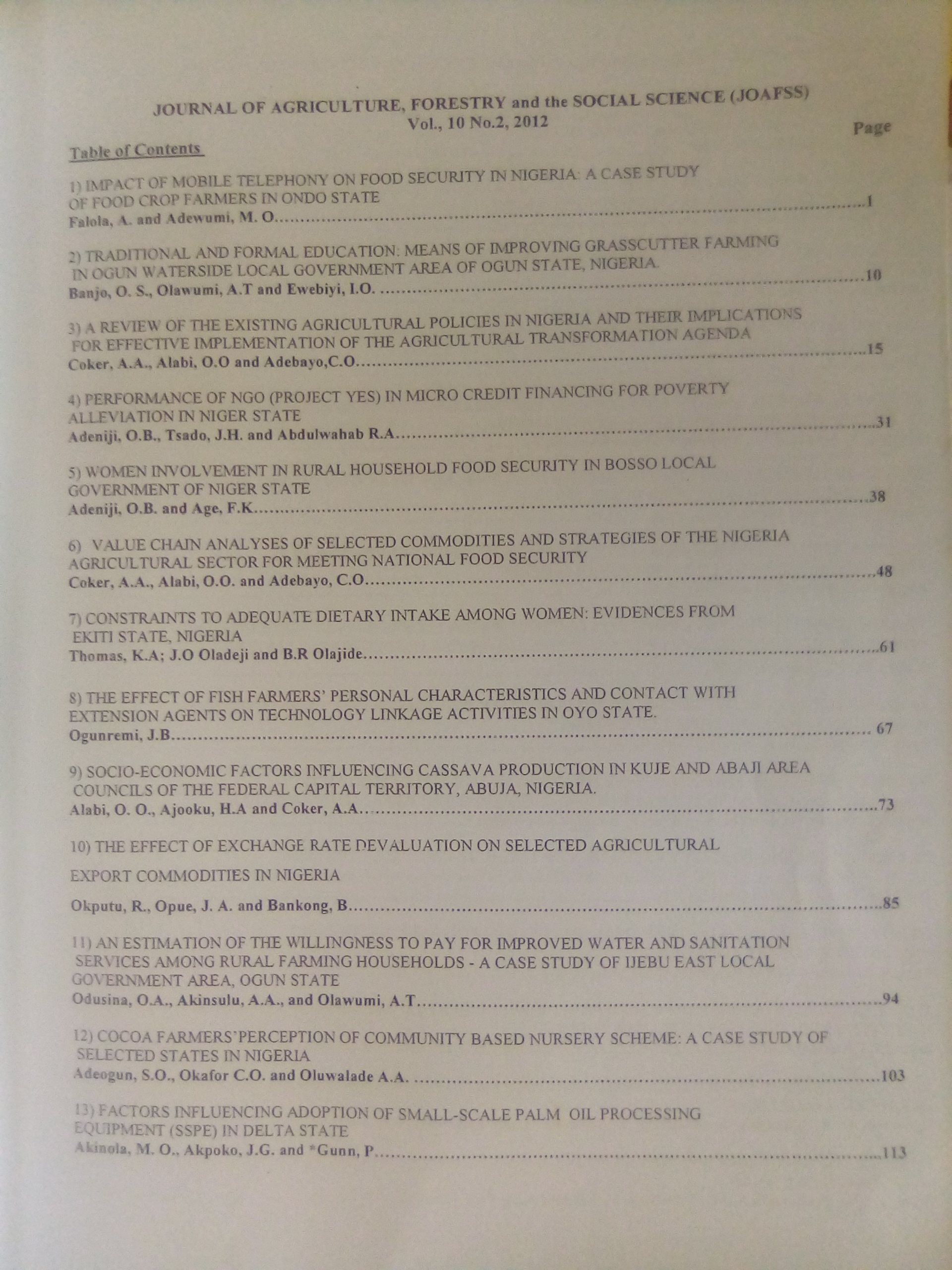 | Publisher: | Journal of Agriculture, Forestry and Social Science |